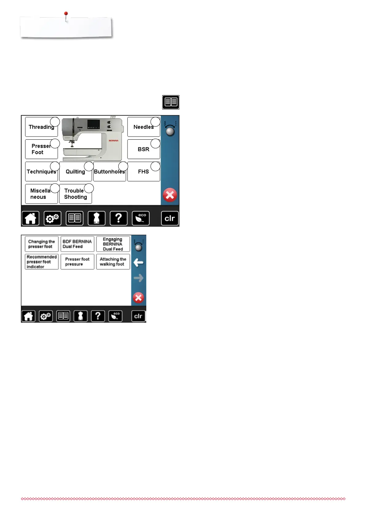 select desired topic, e.g. changing the presser foot