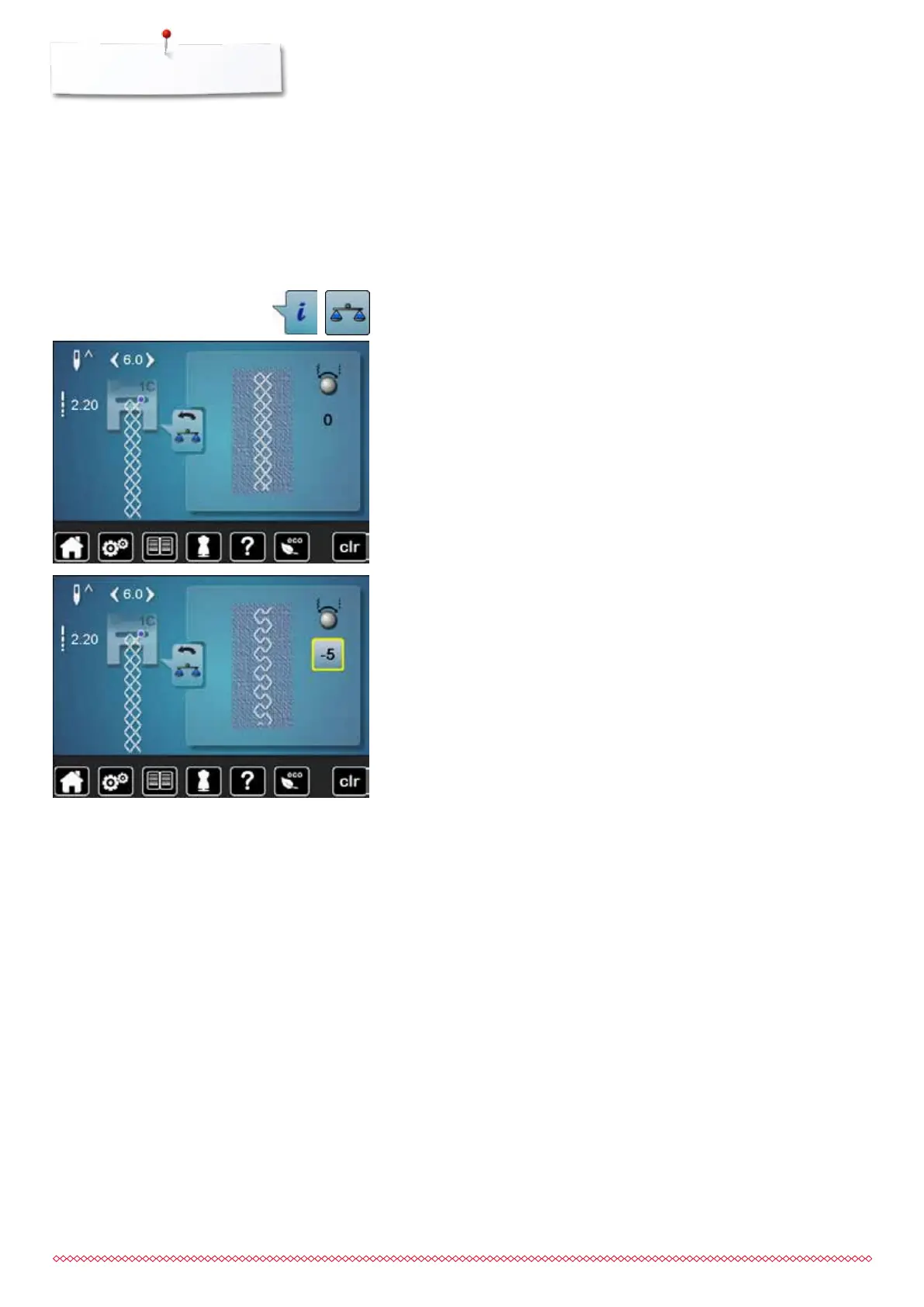 in the left part of the Display the stitch pattern is shown as it is set originally
