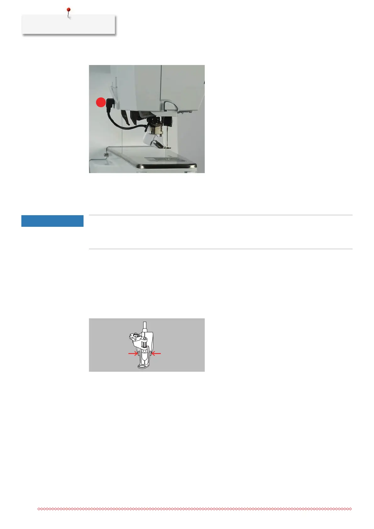 > Insert the new presser foot sole into the guide and push upwards until it clicks into place.