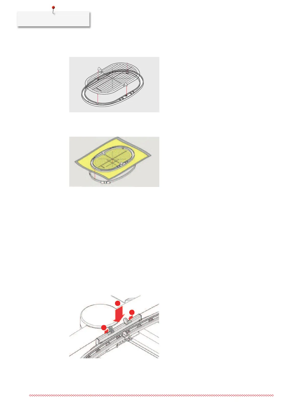 > Fit the hoops into each other; ensure that the material does not move.