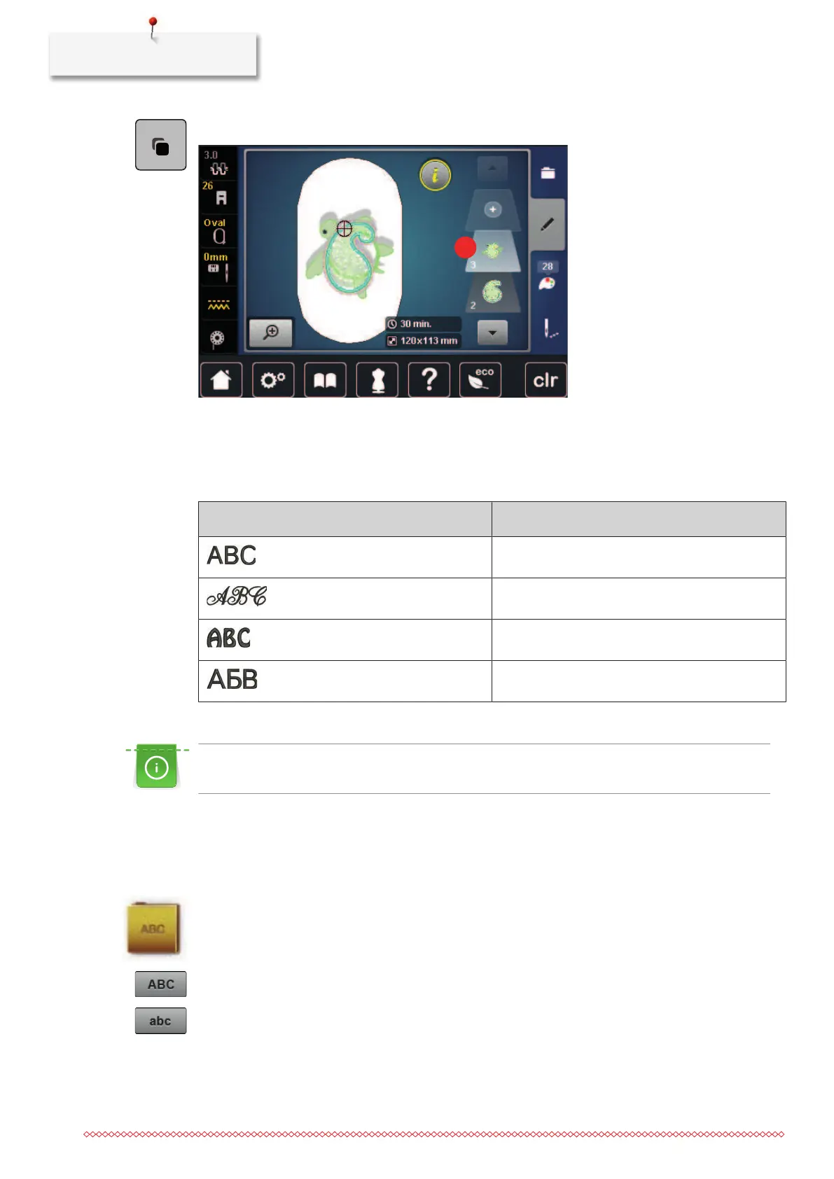 area to be embroidered, the hoop is outlined in red on the display. With the hoop selection it can be