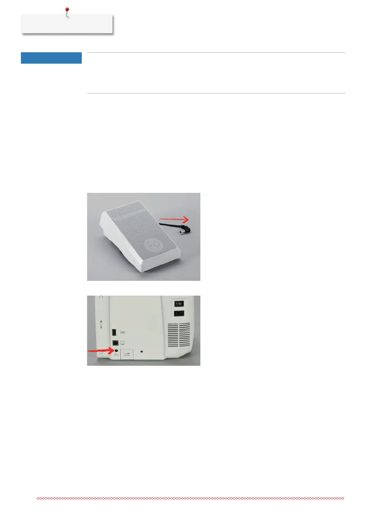 > Unroll the cable of the foot control to the desired length and fix it in the cable holders of the foot