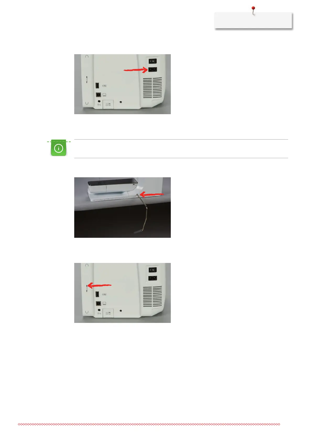 > Insert the device connector of the power cable into the machine's power cable connection.