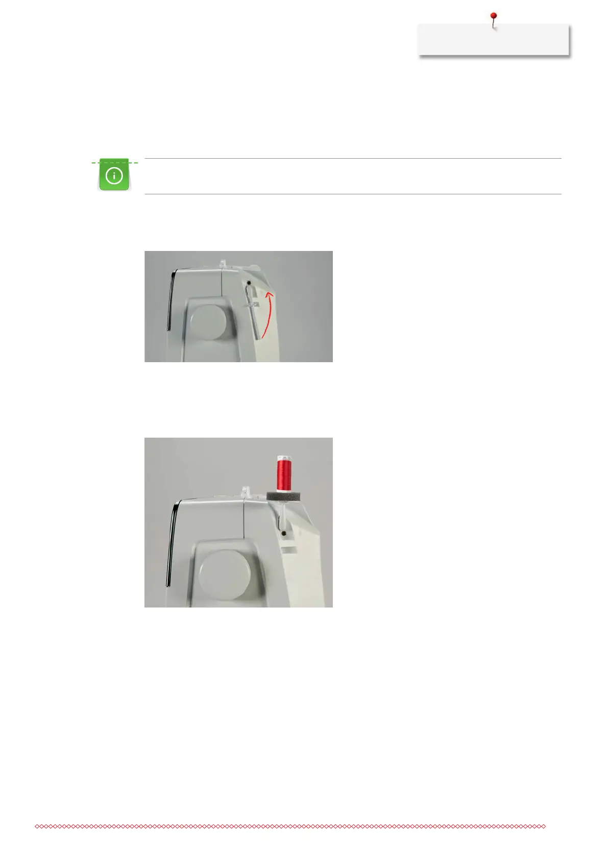 > Place the thread spool on the spool pin.