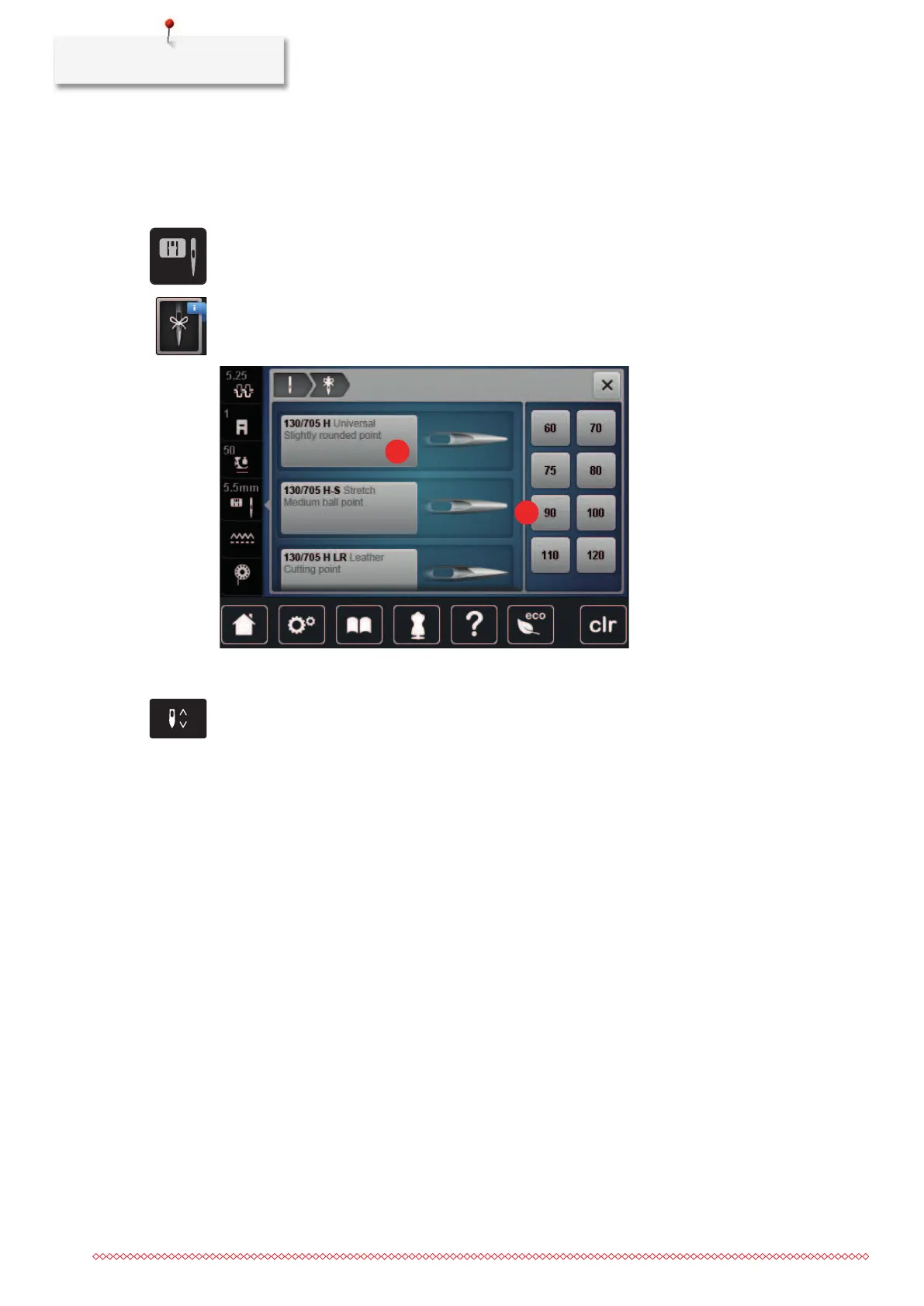 Selecting the needle type and the needle size