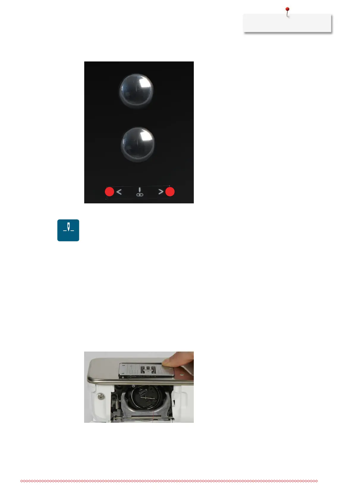> To position the needle position to the right, push the button«Needle right»(2).