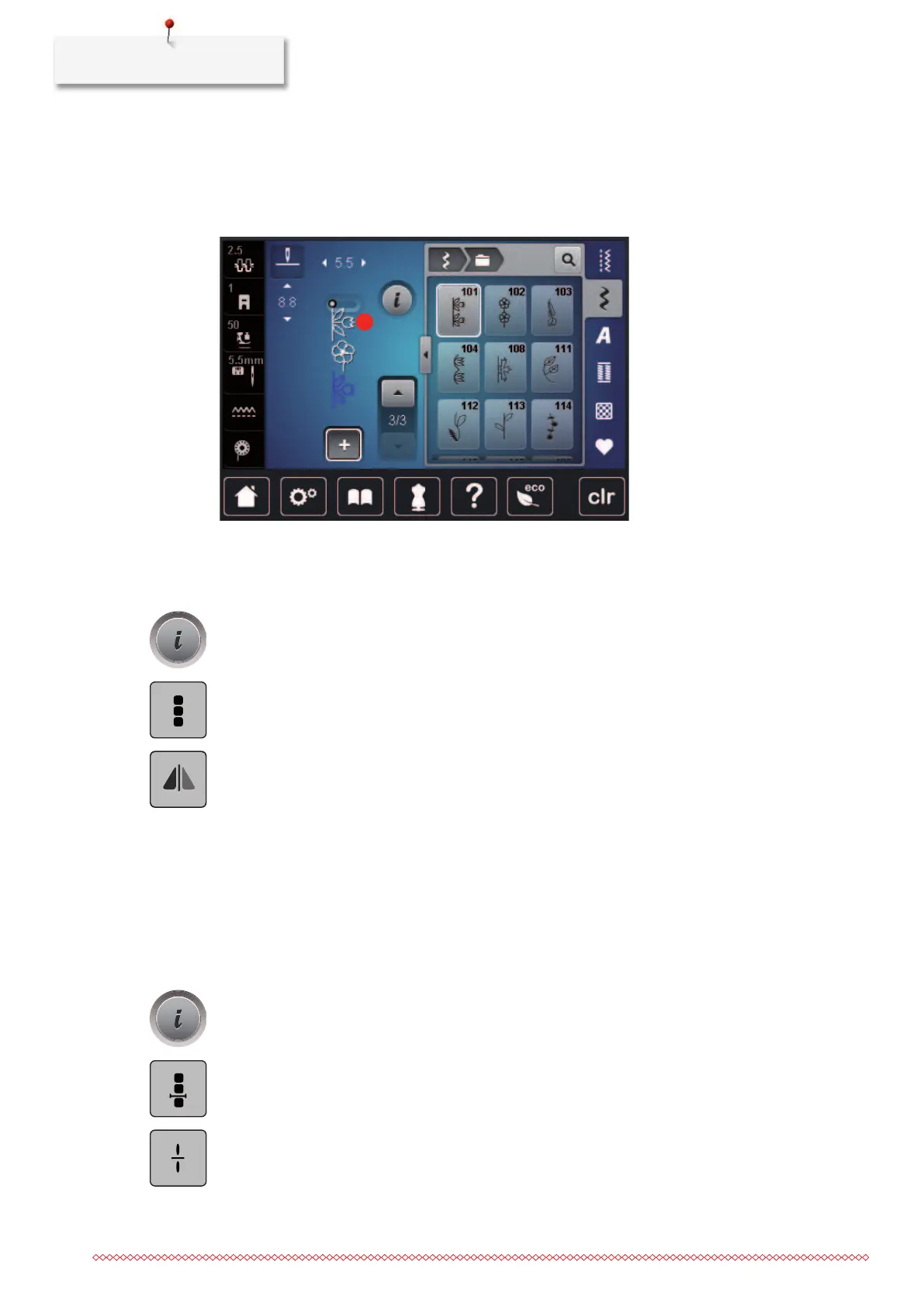 > To mirror the whole stitch pattern combination from left to right, tap, «Mirror Image Left/Right».