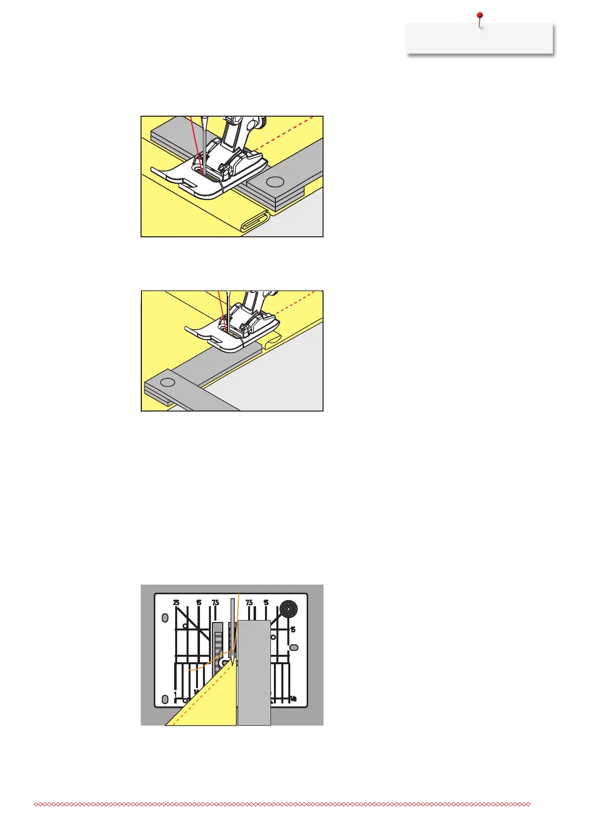> When the fabric edge is reached, stop the sewing process with needle position down.