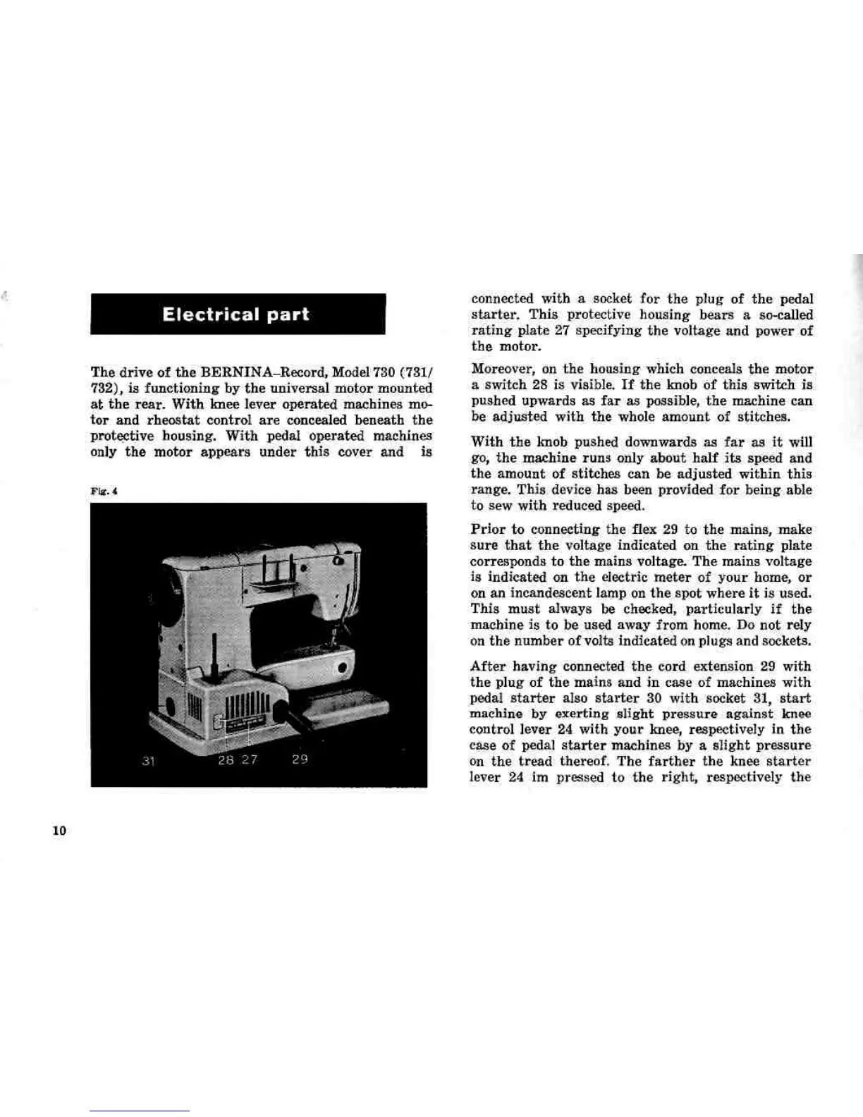 Bernina 731 - Electrical System and Motor Care; Electrical Part Operation and Connection