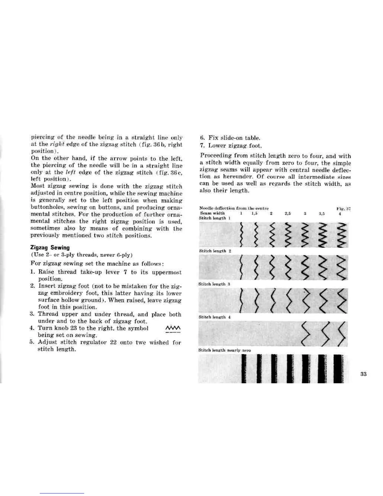 Bernina 731 - Zigzag Sewing Settings; Preparing for Zigzag Sewing