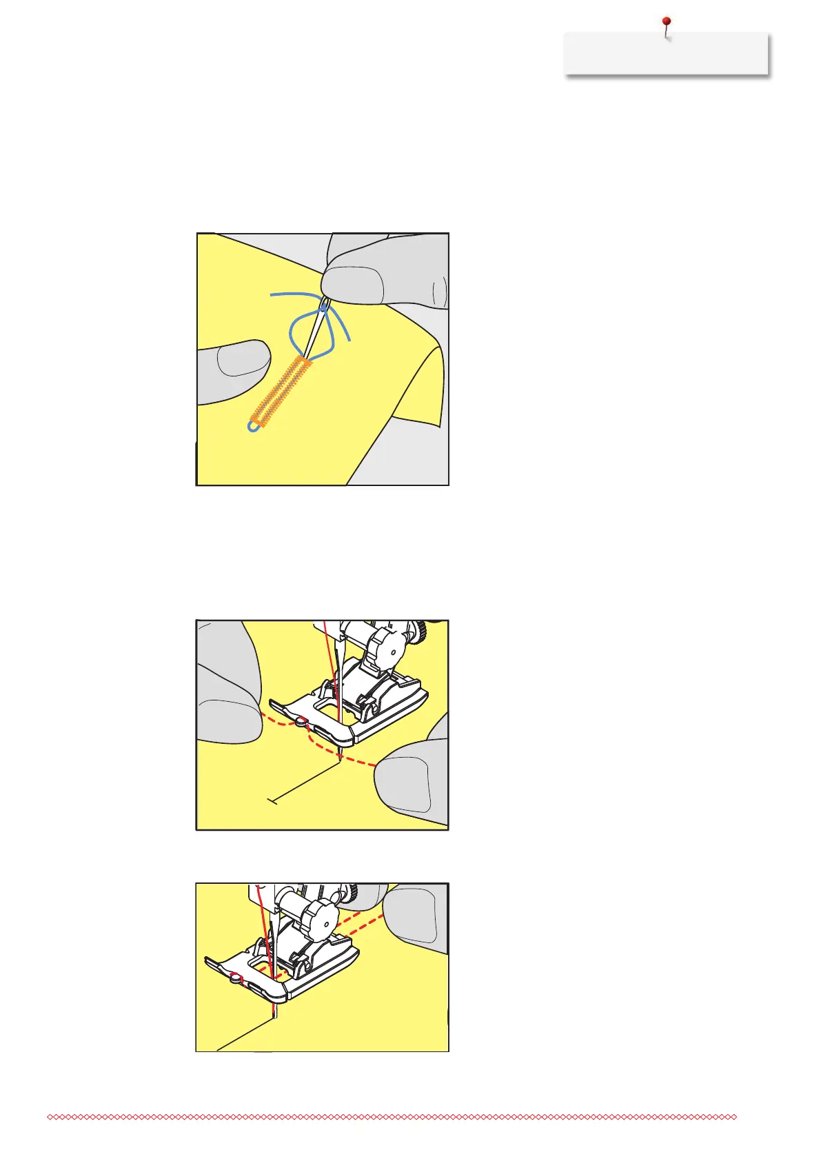 > Insert the needle at the beginning of the buttonhole.