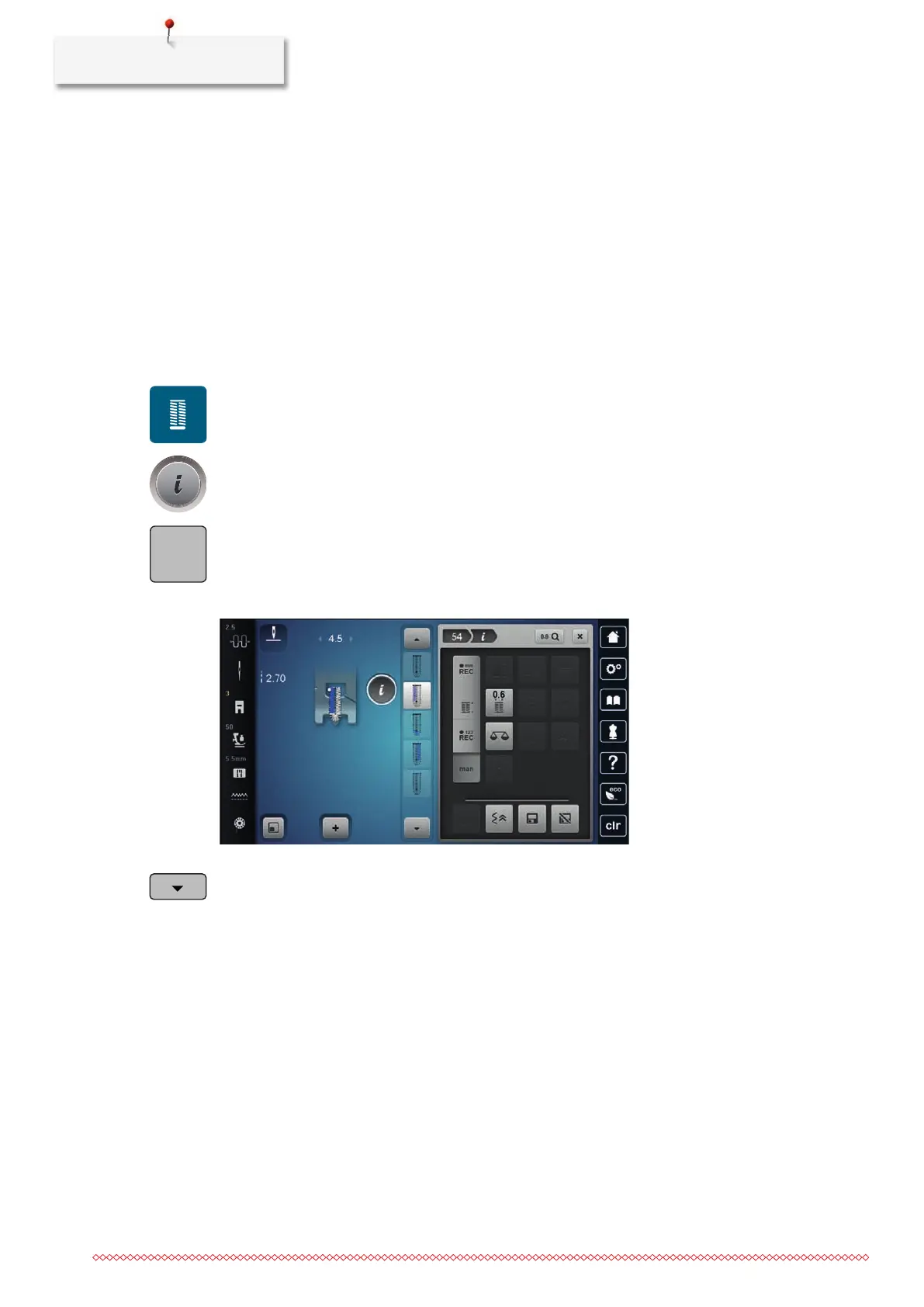 – Step 1 is activated in the display for the start of the buttonhole.