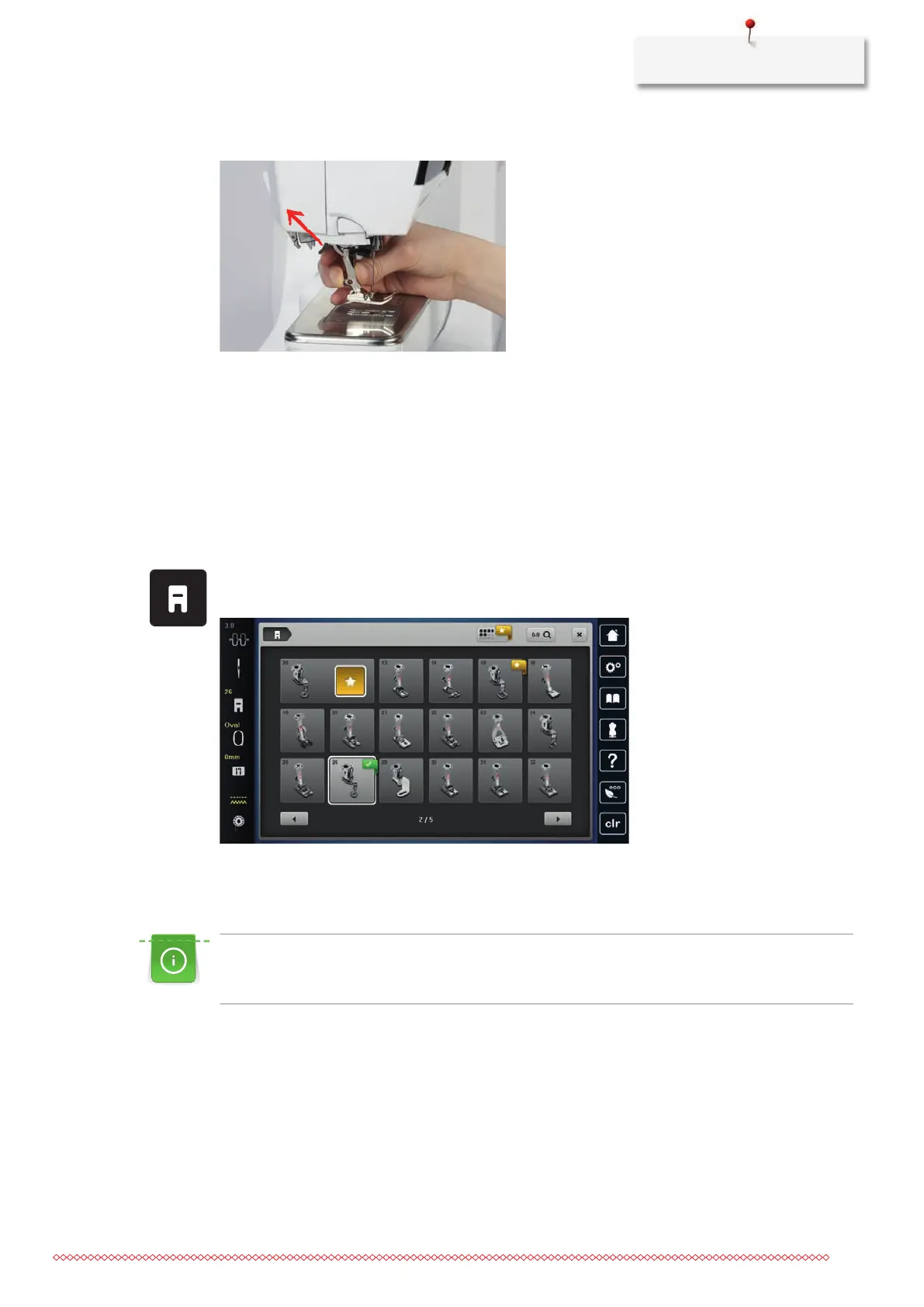 selected and saved on the machine. Moreover optional presser feet can be displayed which are available for