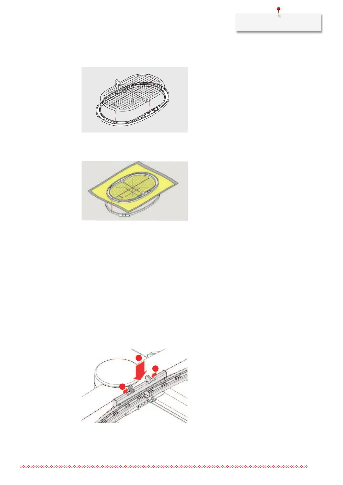 > Fit the hoops into each other; ensure that the material does not move.
