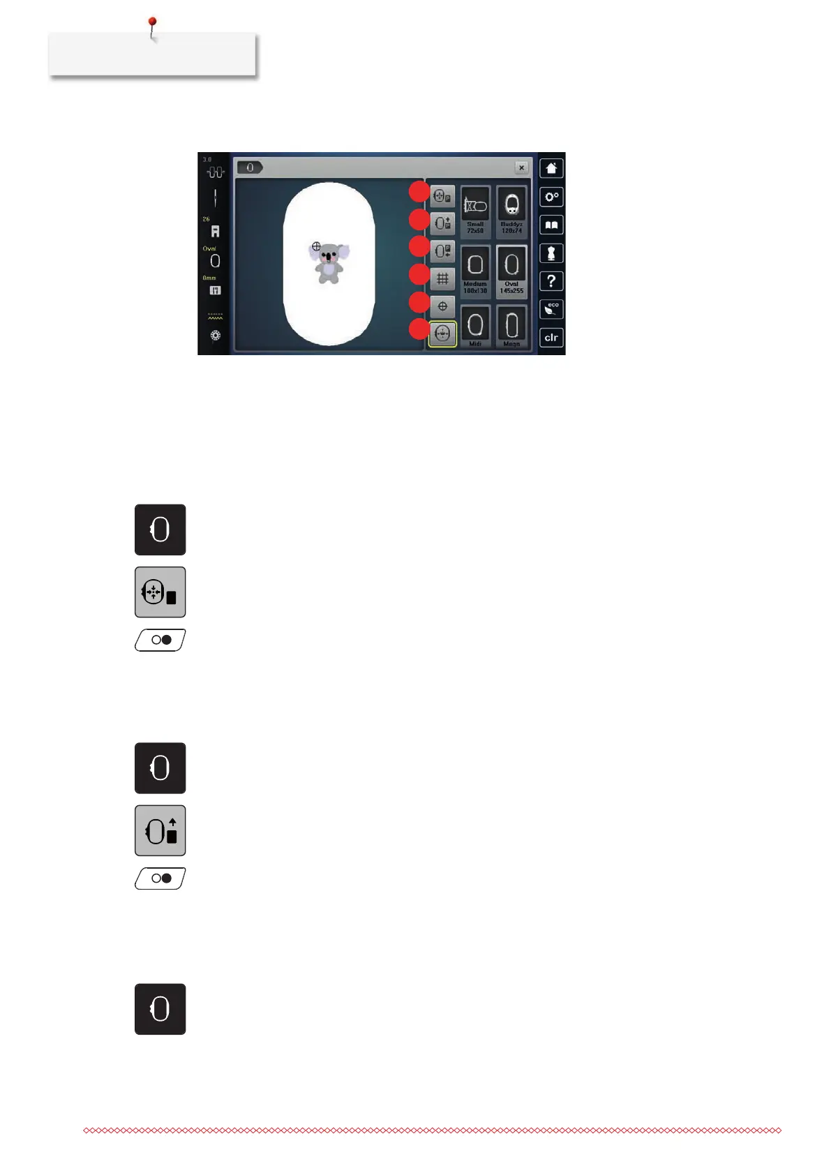 1 «Center Embroidery Hoop to Needle» 4 «Grid On/Off»