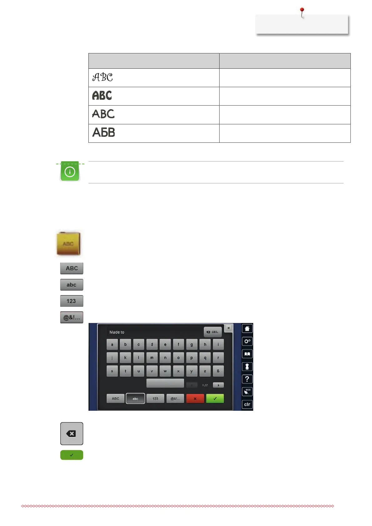 every letter or every word has to be selected individually and placed in the area to be embroidered.