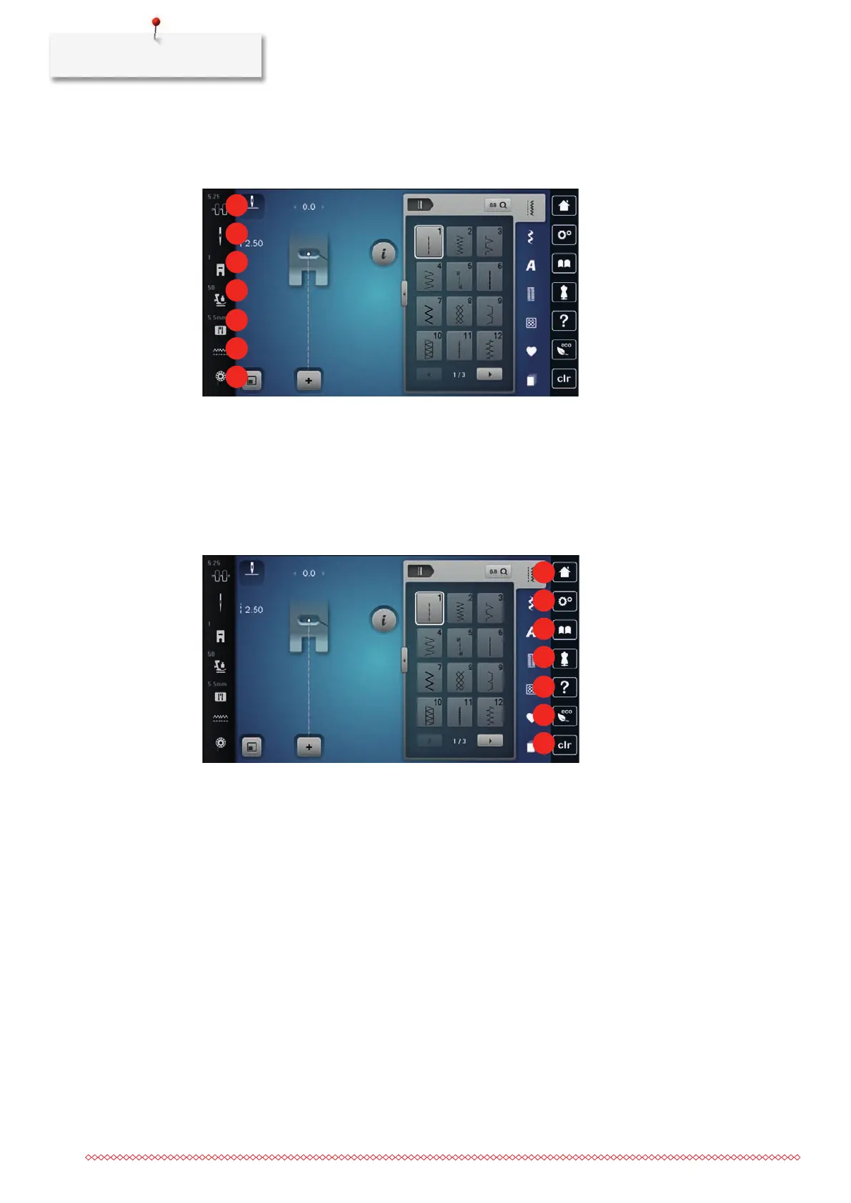 1 «Upper Thread Tension» 5 «Stitch Plate Selection»