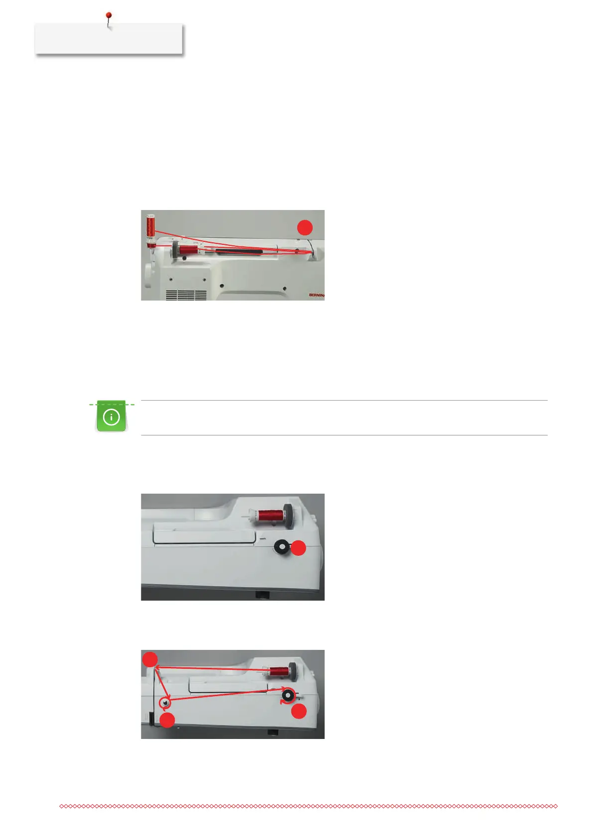 > Guide the thread around the bobbin winder pretension clockwise (3).