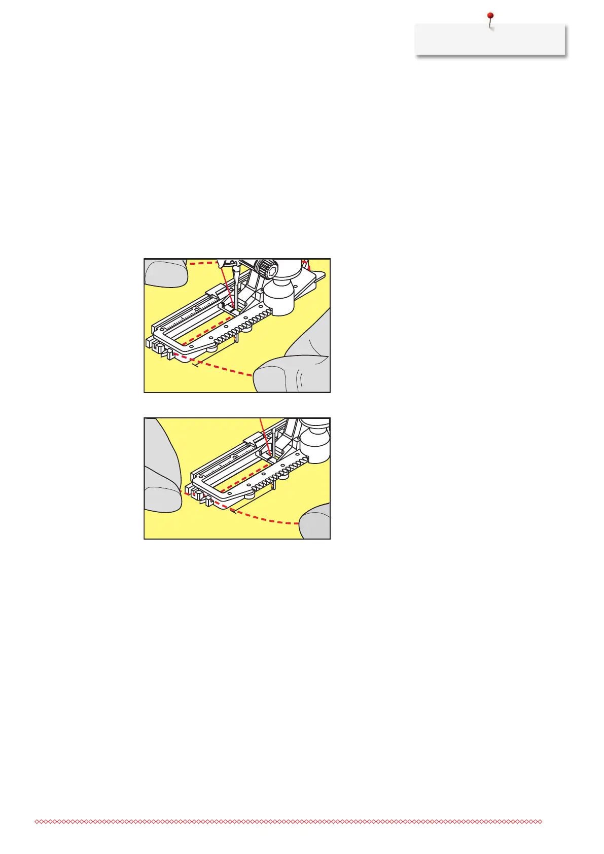> Guide the cord on the right side under the buttonhole foot with slide.