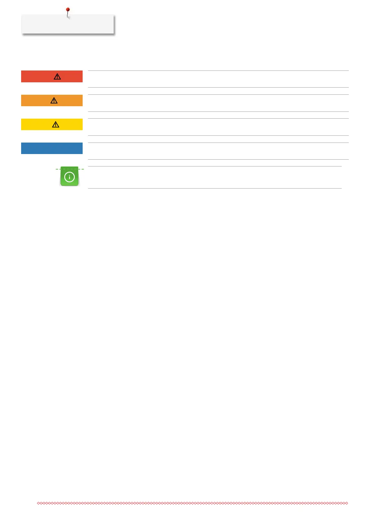 Designates a high-risk hazard which can lead to serious injuries or potentially even death if not avoided.