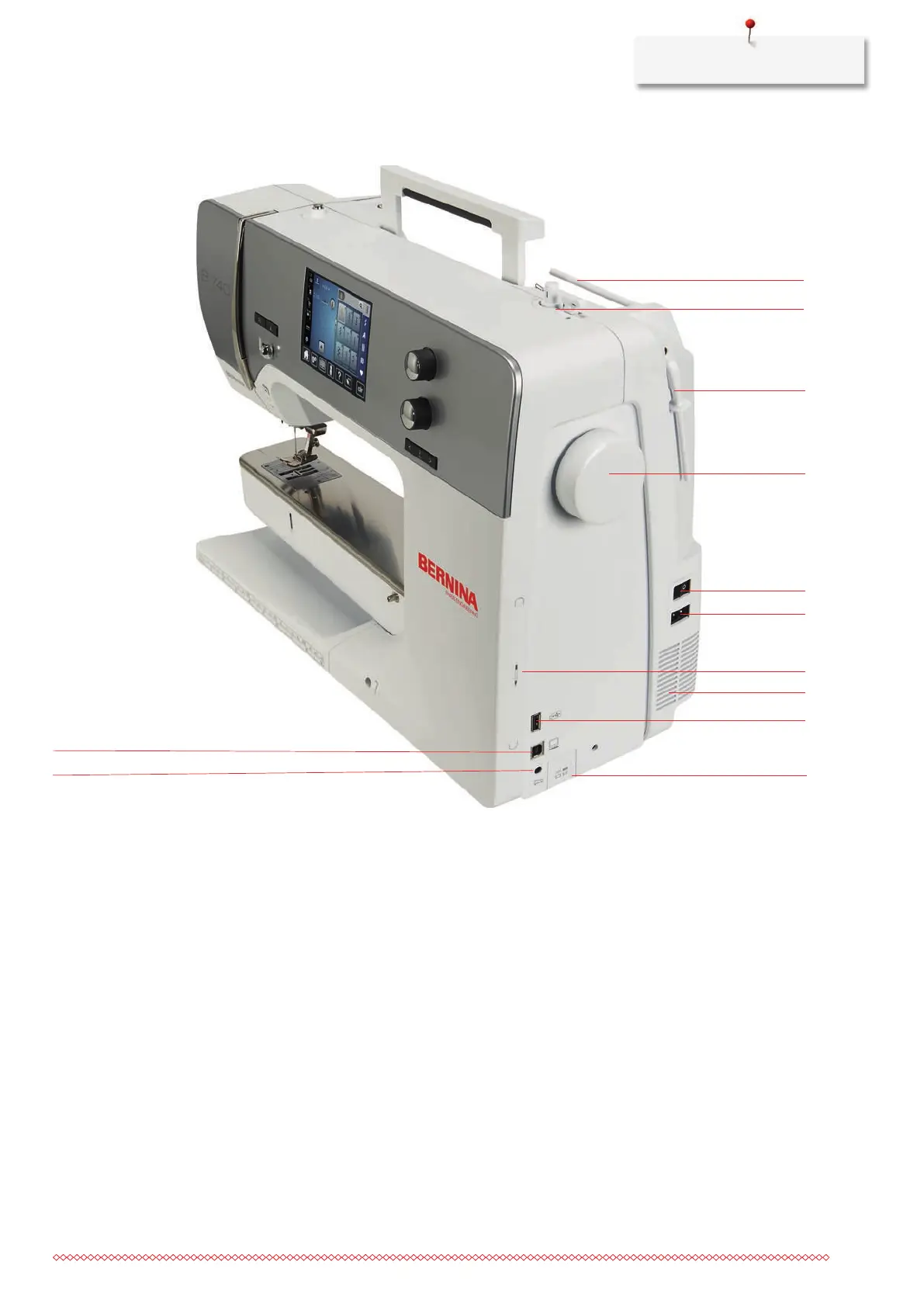 5 Swiveling spool pin 11 USB port