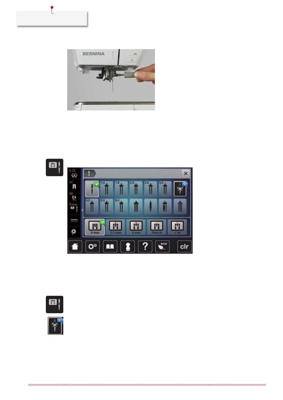 saved on the machine. This means that the saved needle type and needle thickness can be checked at any