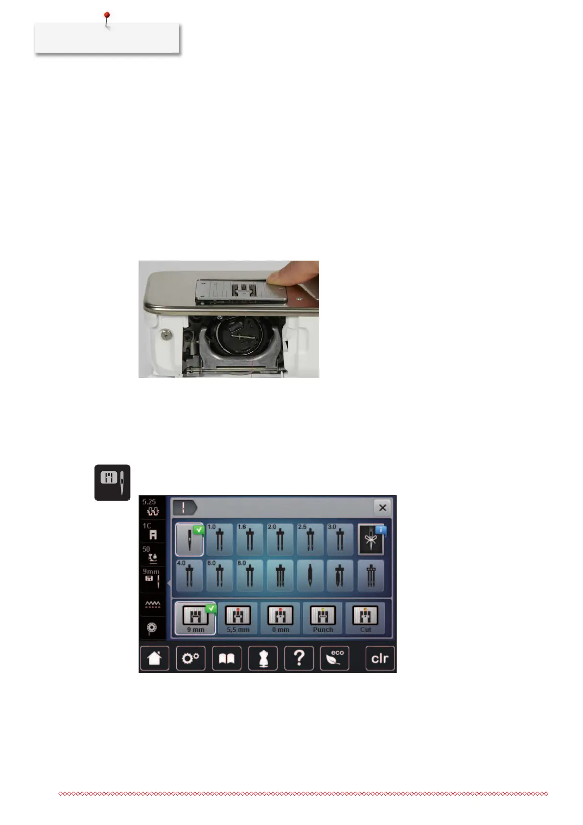– If the selected stitch plate is suitable to be used in combination with the needle, sewing can begin.