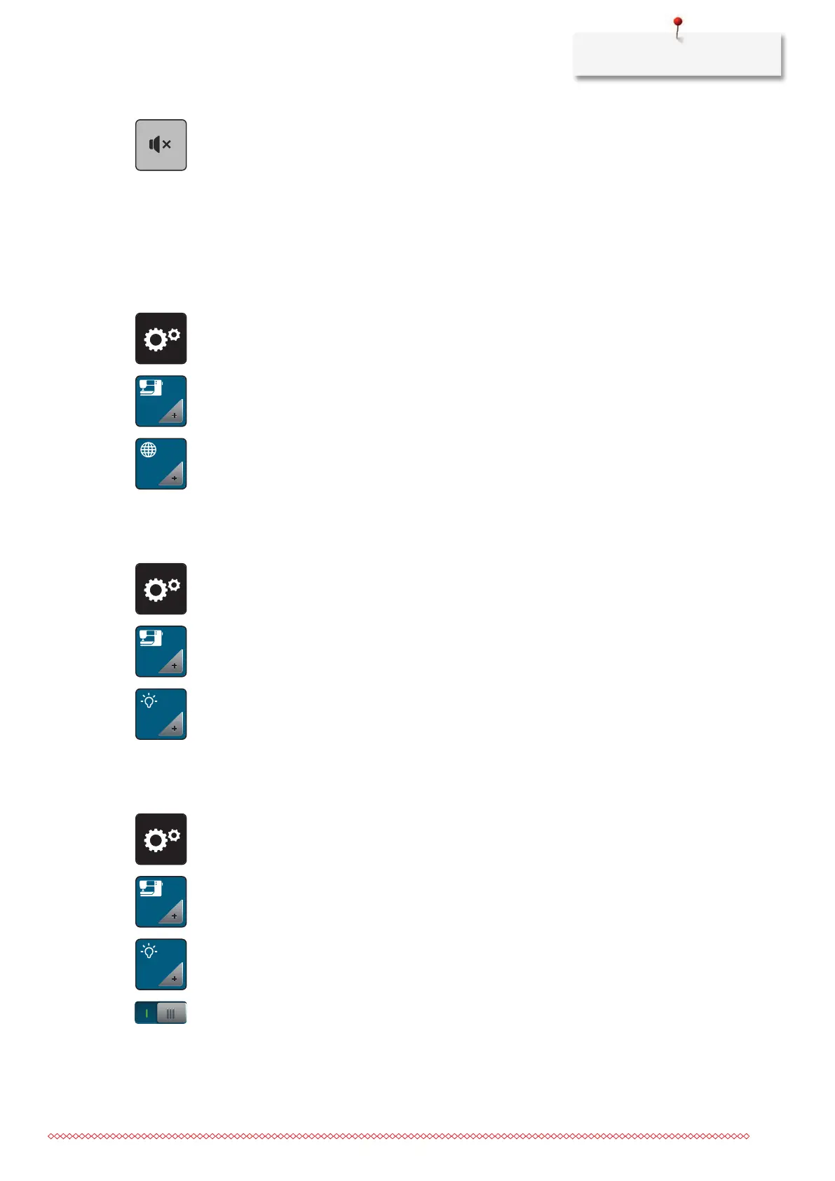 > Adjust the brightness of the sewing light in the lower section of the screen.