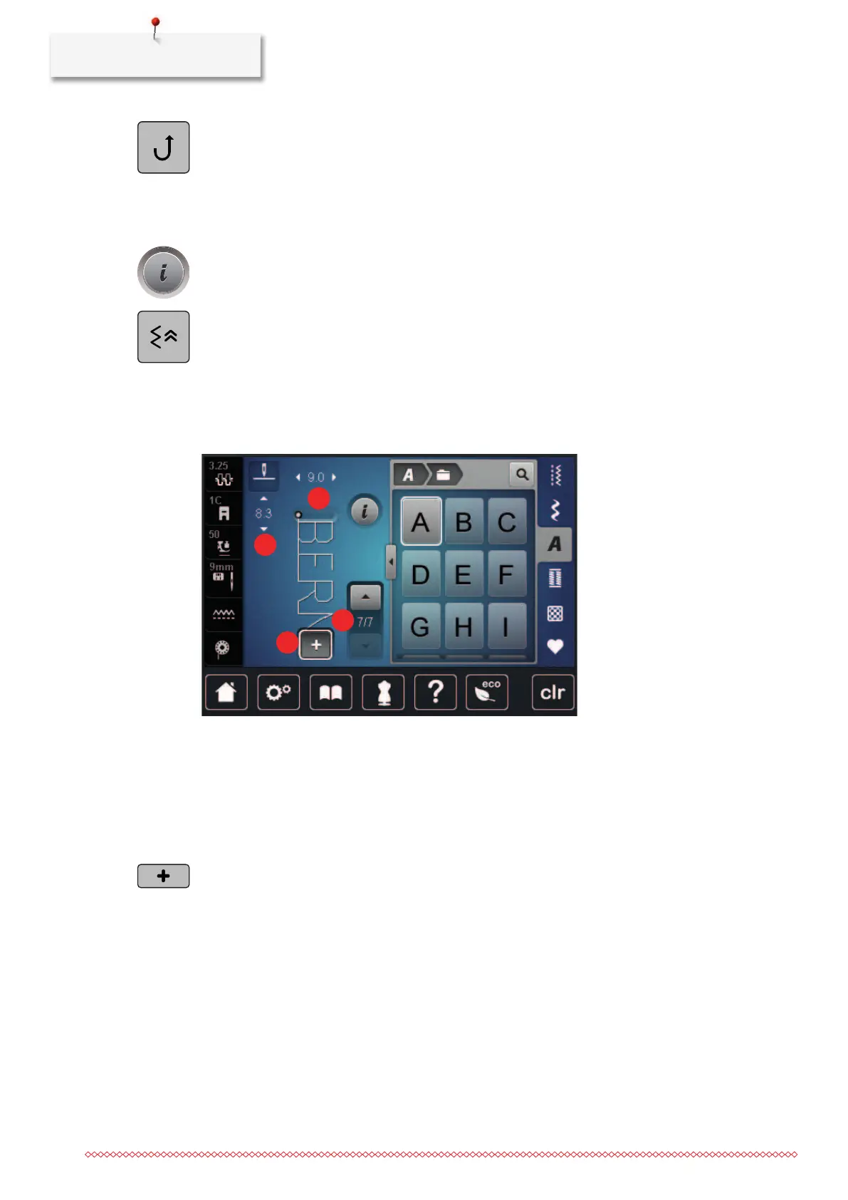 – The machine sews permanently in reverse until the icon «Permanent Quick Reverse» is tapped again.