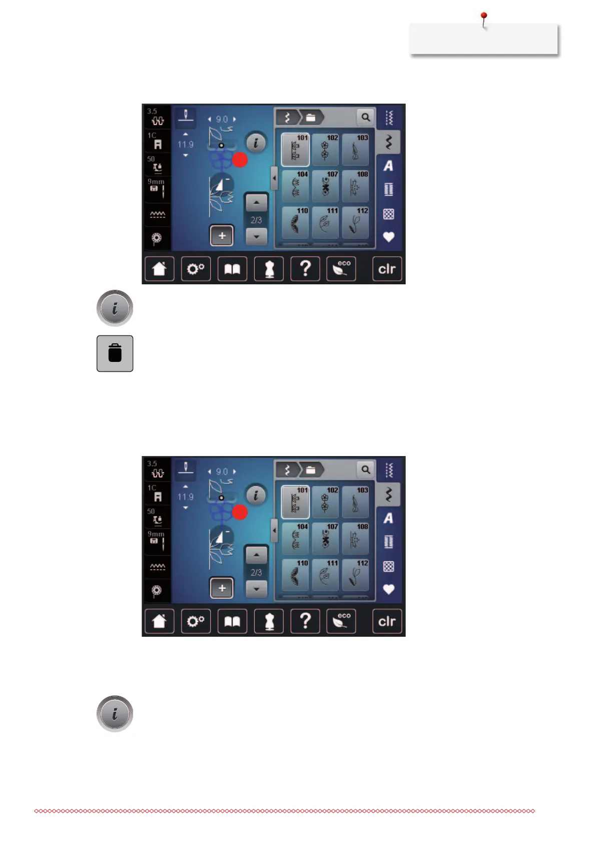 > Tap the desired stitch pattern(1) within the stitch pattern combination.