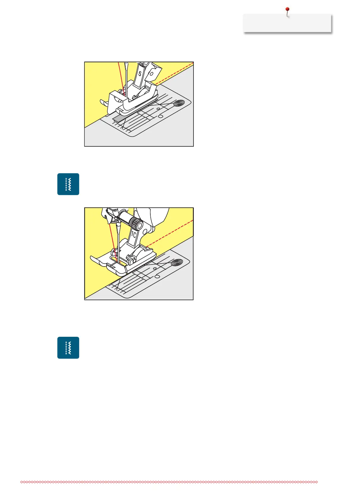 When sewing parallel wider lines, it is recommended to guide the seam guide along the sewn of lines.