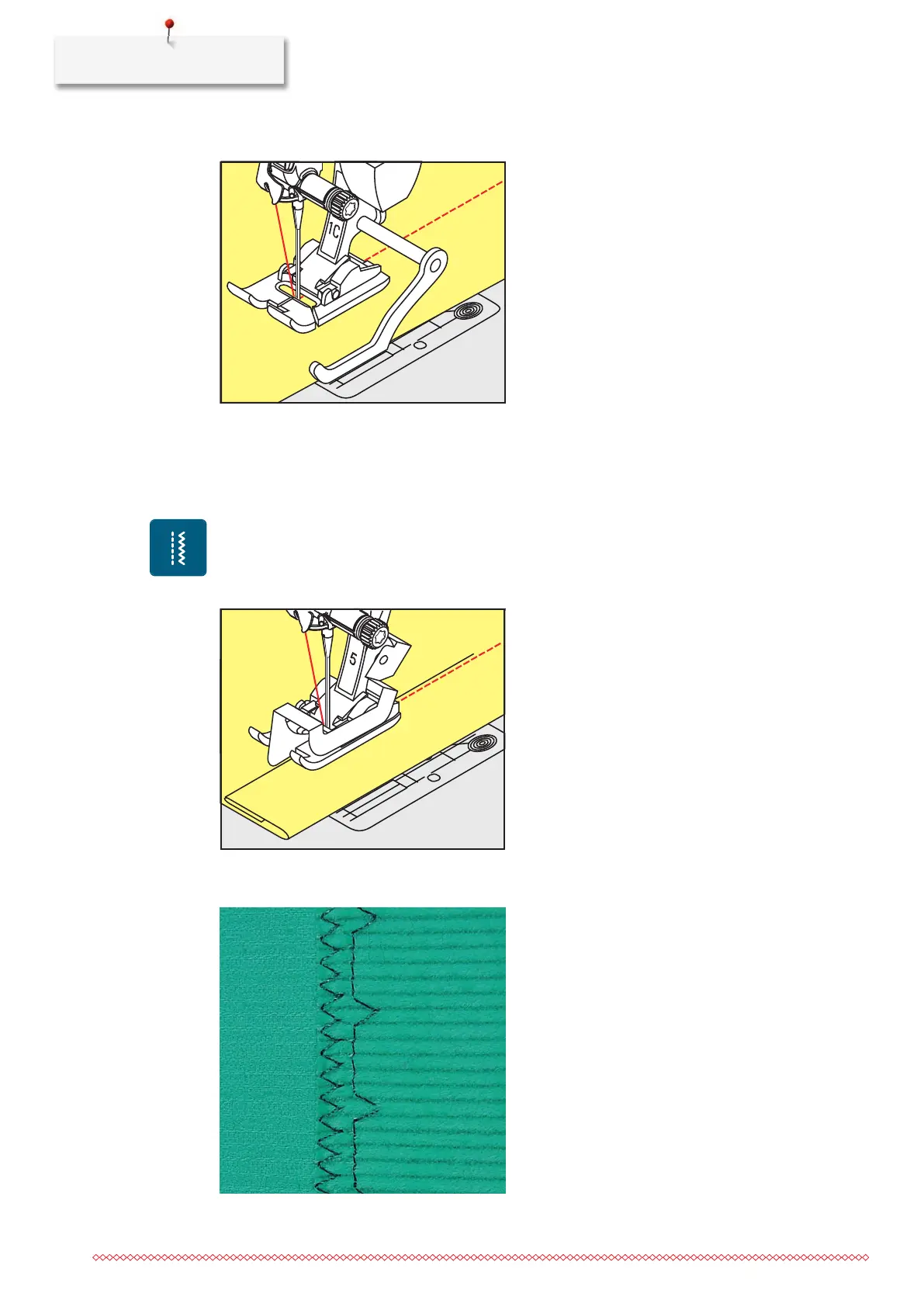 > Select the needle position to the far right in order to sew along the upper edge.