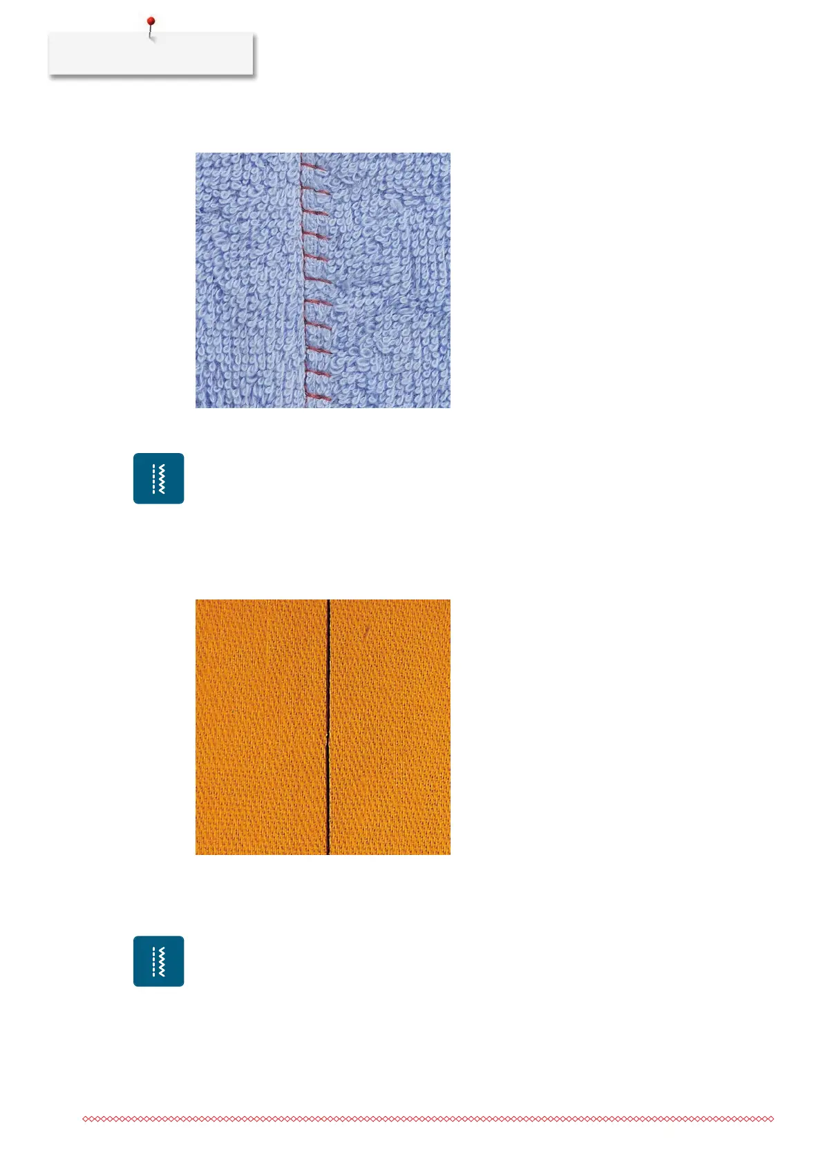 > To get a very flat, durable seam, make sure the needle stitches right over the top edge of the fabric into