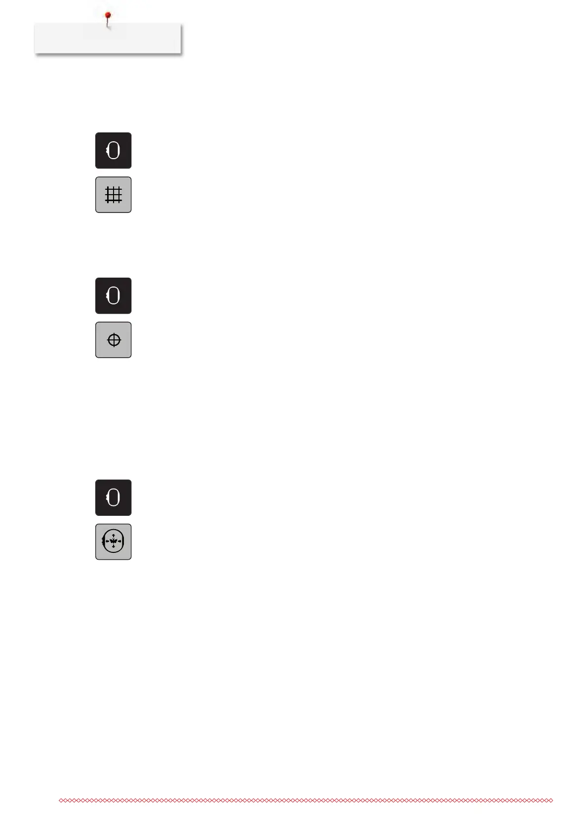 > Touch the icon «Center of the embroidery motif» to position the hoop so that the needle is placed