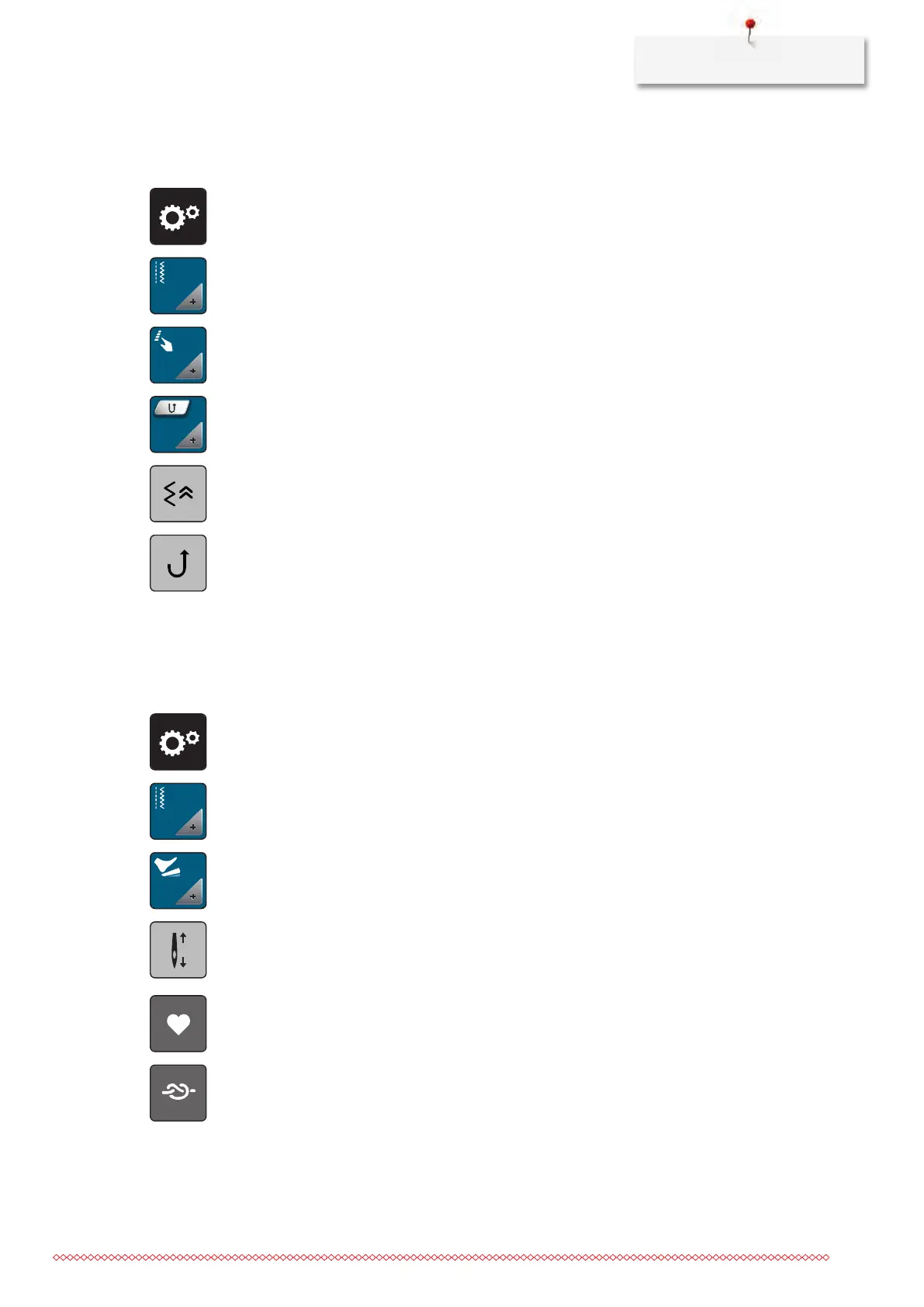 When the icon «Needle up/down» is activated, the needle is raised or lowered via a back kick on the foot
