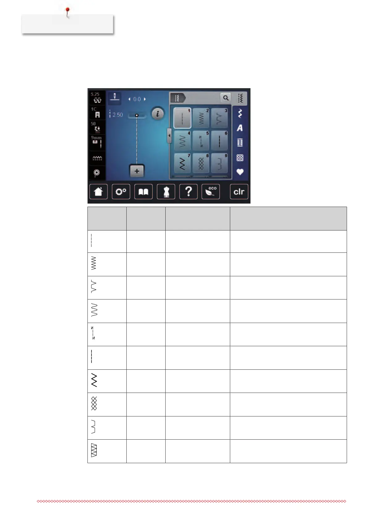 8 Honeycomb stitch For stretch fabrics and hems. Is also used with