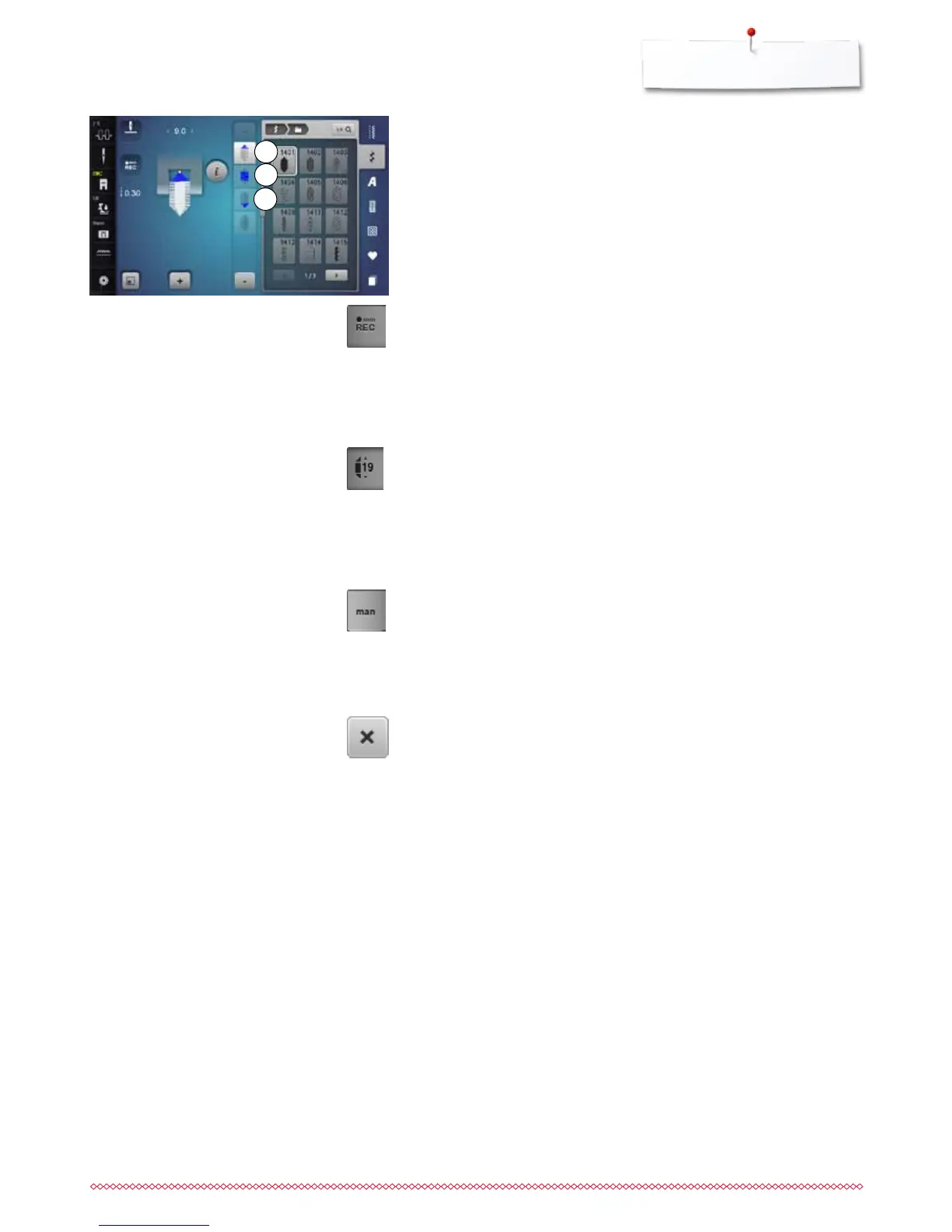 program the length using the stitch width or the stitch length knob