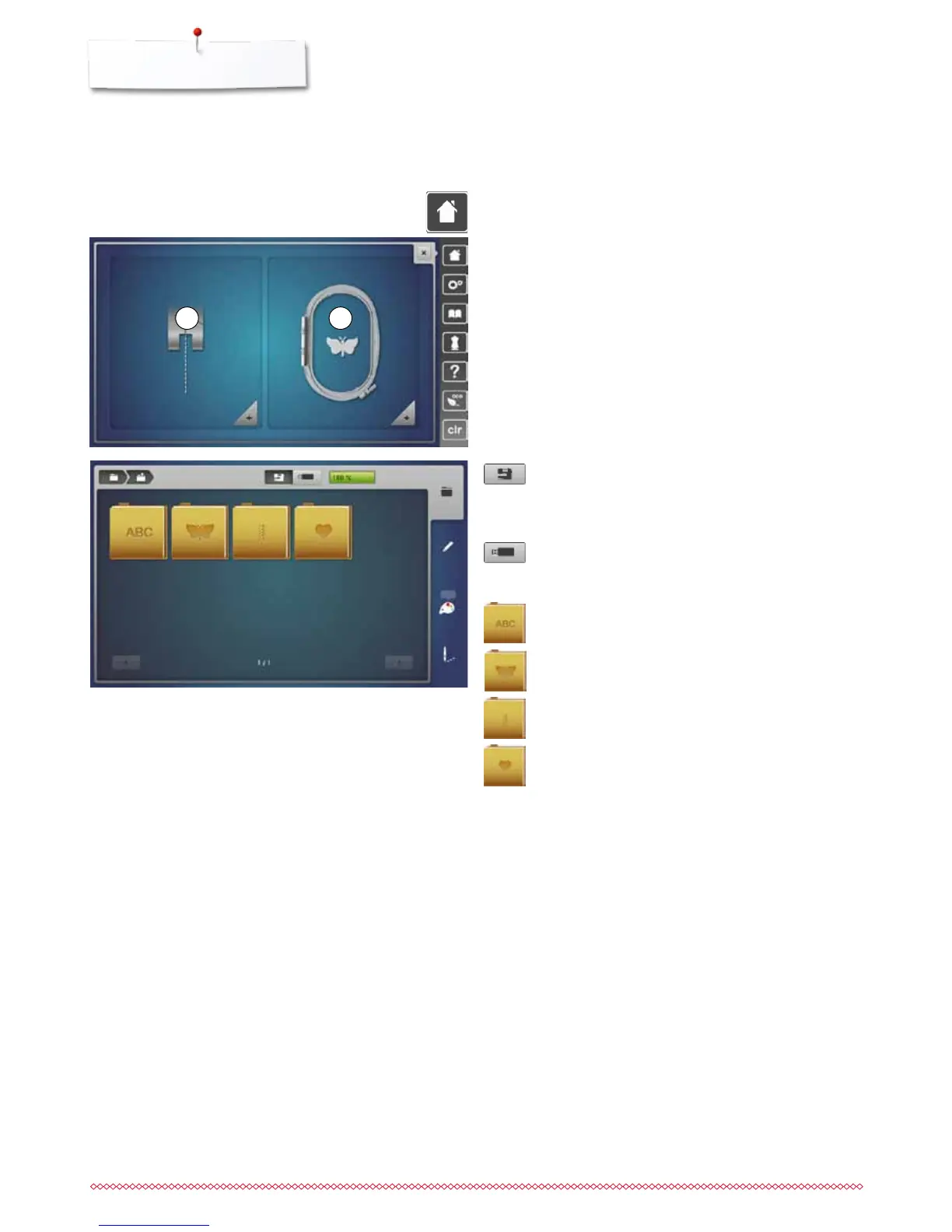 «Alphabets», «Motifs», «Stitch patterns» or «My