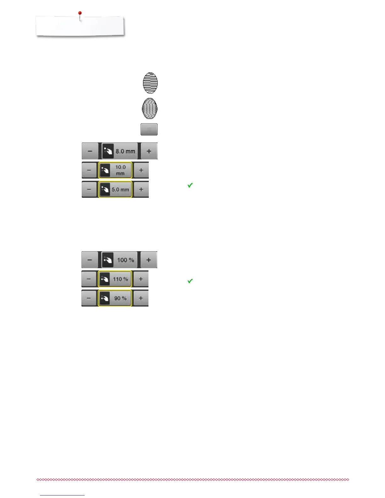 touch «+»/«-»-icon or turn stitch length knob to the left or to the right