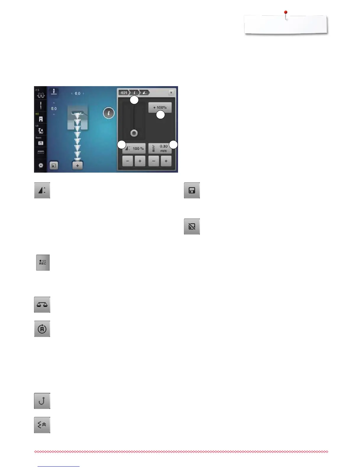 Certain decorative stitches (e.g. No. 401) allow an alteration of