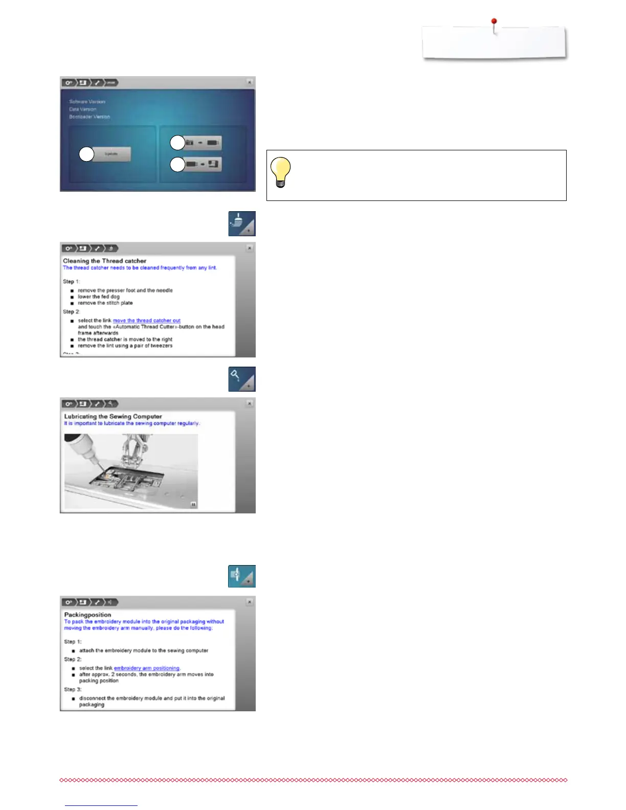 Lubricating the sewing-/embroidery computer