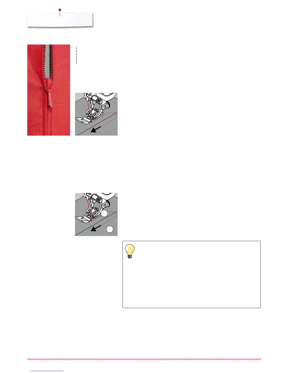 hold thread firmly when starting to sew = pull fabric slightly to the
