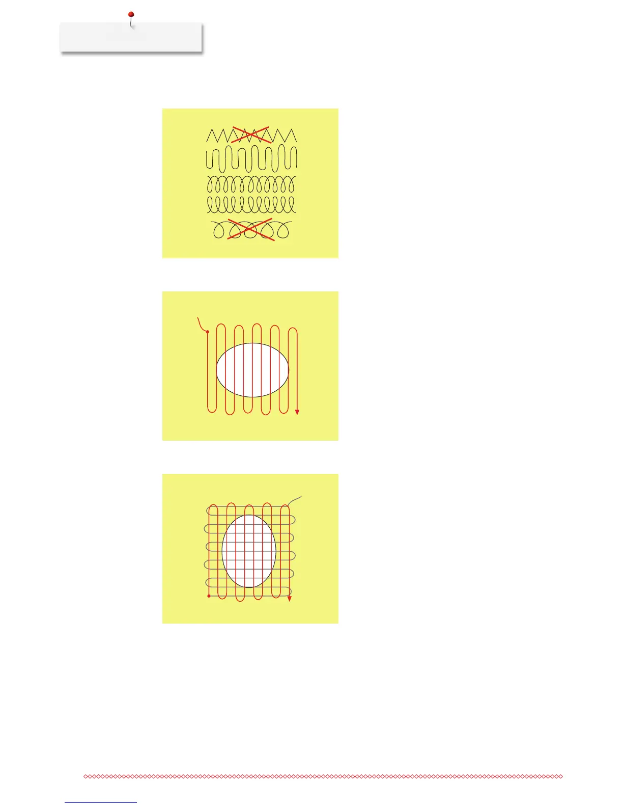> Move in curves when changing the direction to avoid holes and thread breakage.