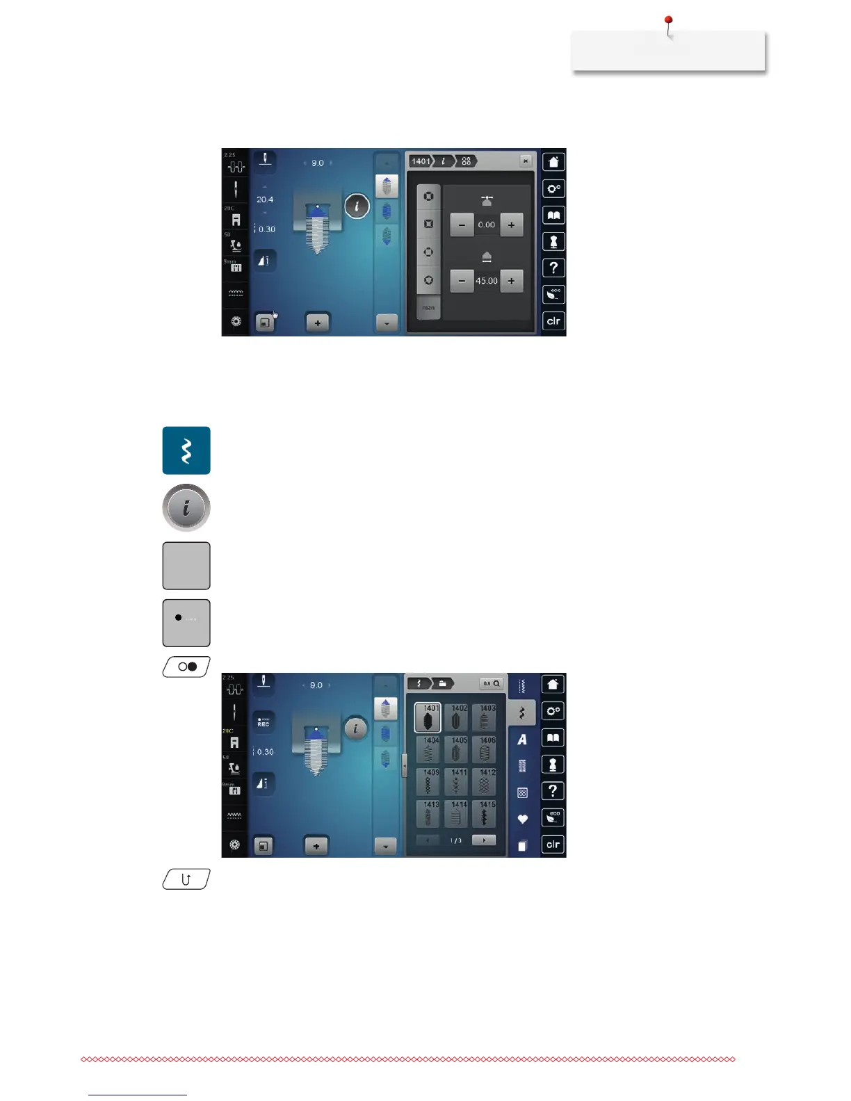 > Touch the icon «Program the tapering length» to save the alterations of the stitch pattern automatically.