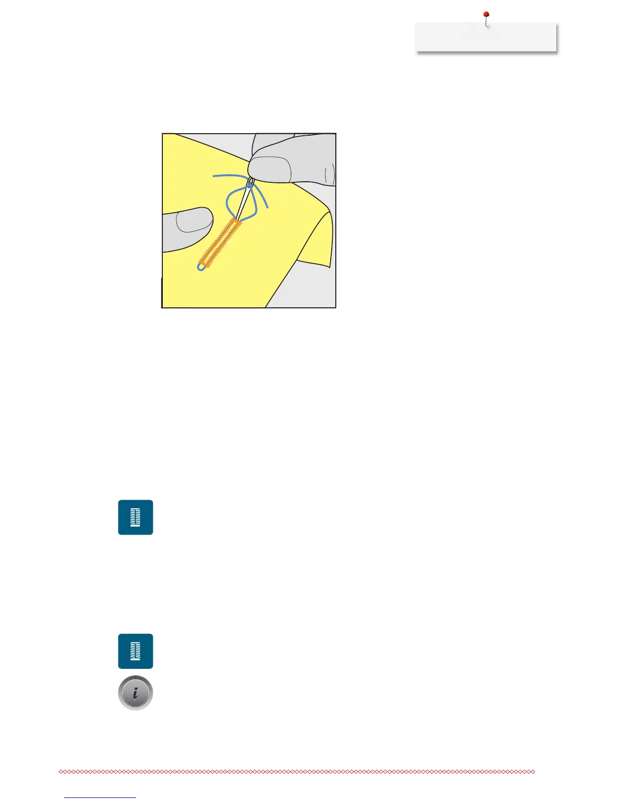 > Pull the ends of the cord through to the wrong side of the fabric using a hand stitching-needle and knot
