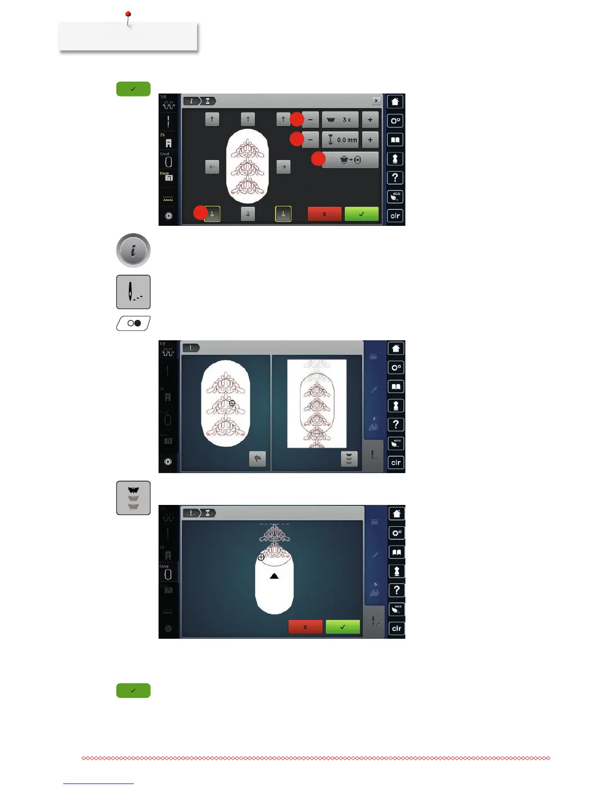 > Touch the icon «Endless Embroidery» when the reference points have been embroidered.