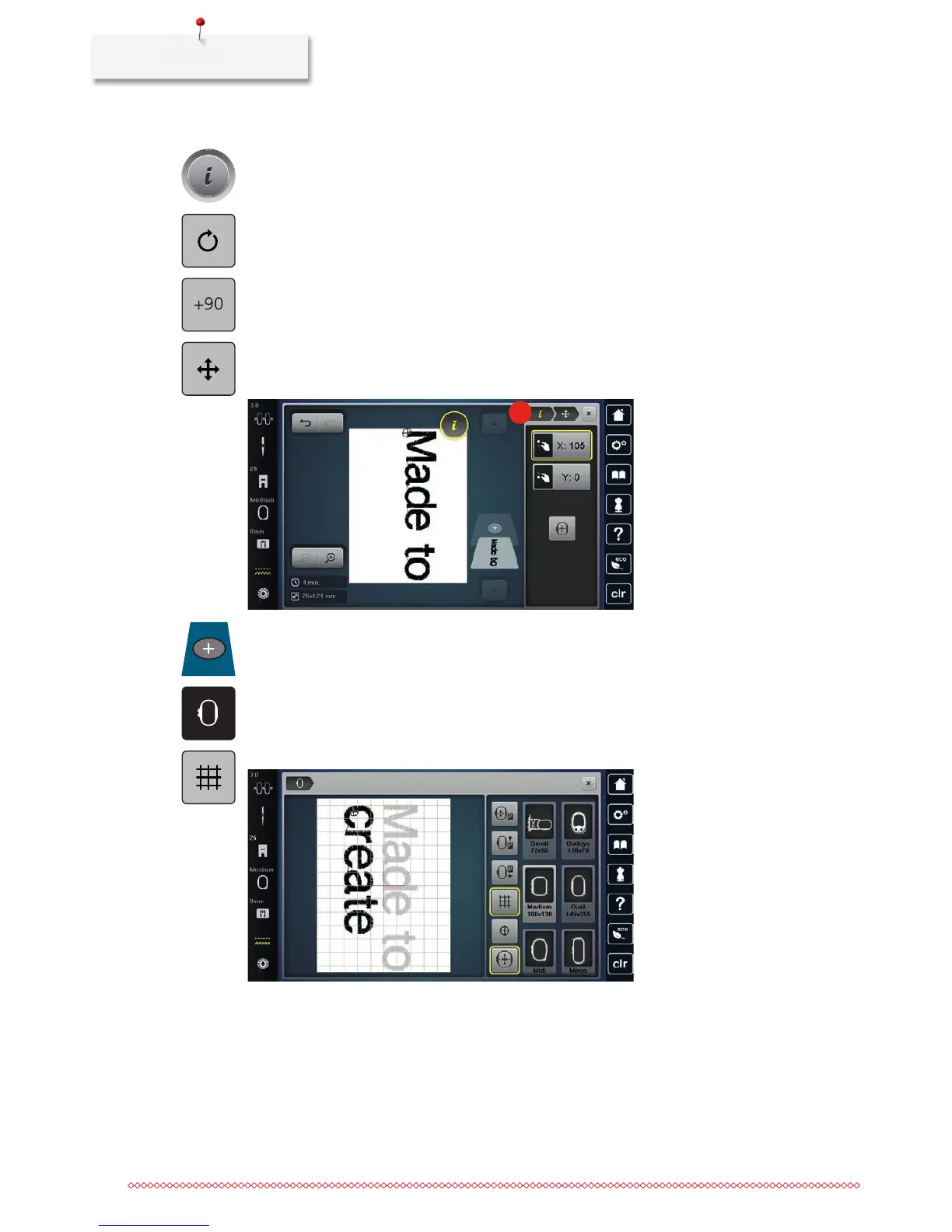 > Turn the «Lower Multifunctional knob» to move the embroidery motif vertically.