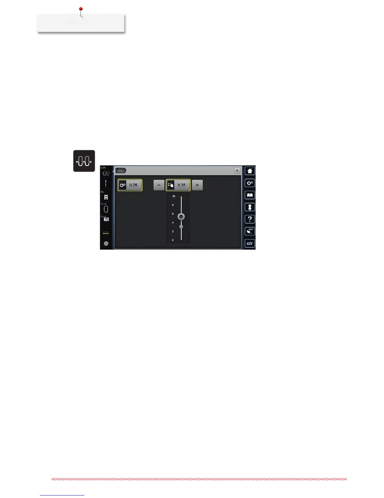 > Move the slide using the touchscreen pen/finger to increase or reduce the upper thread tension.
