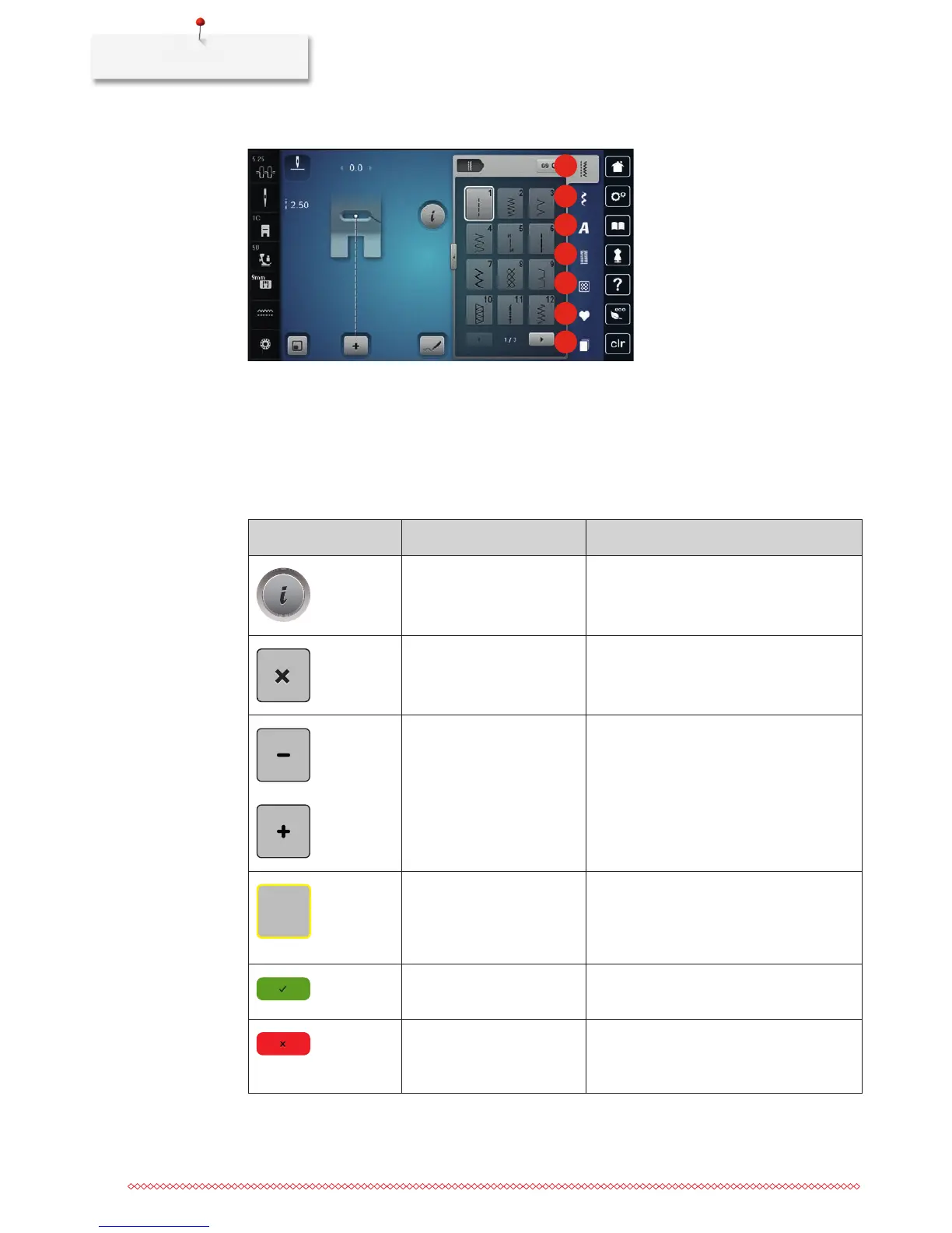 Overview selection menu sewing