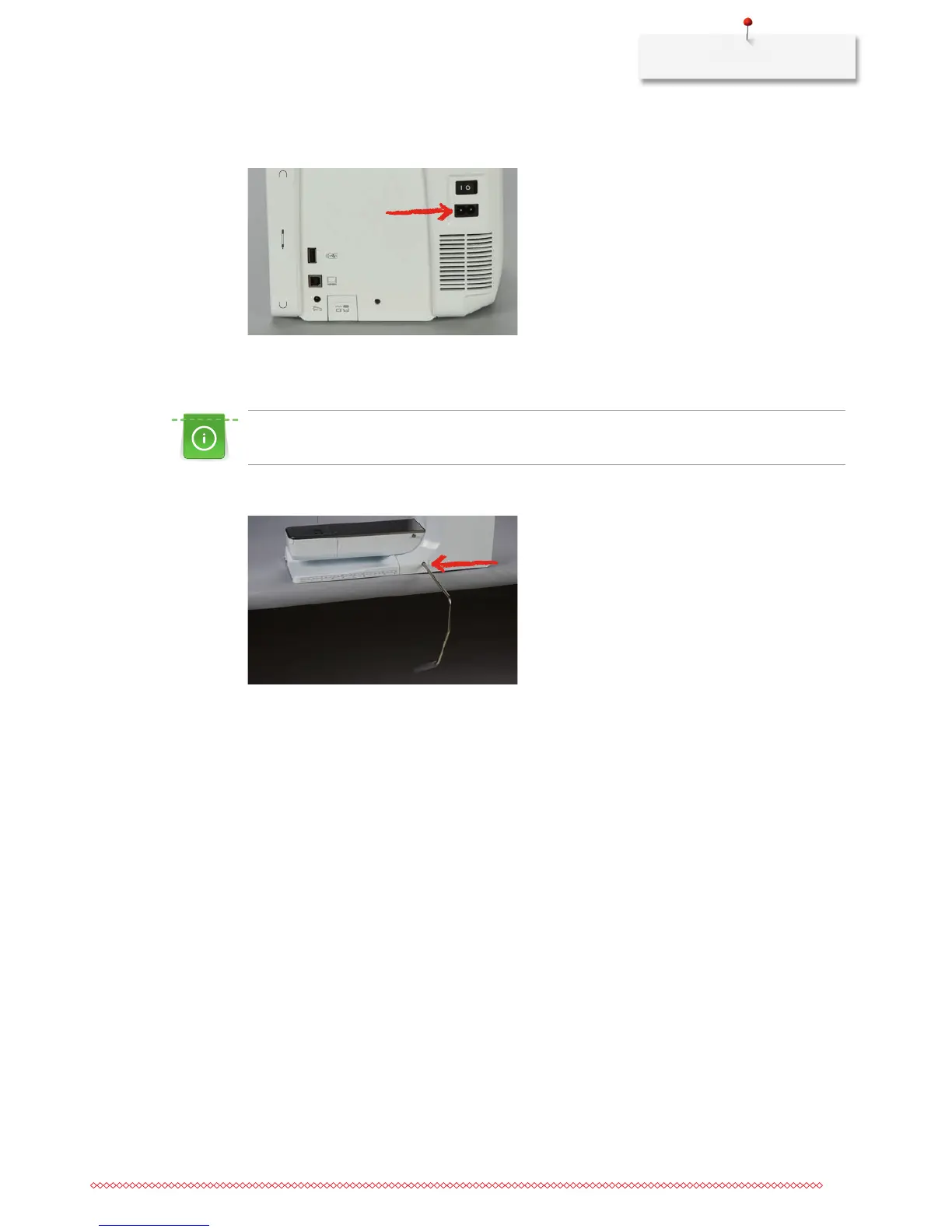 > Insert the knee lifter into the opening at the front side of the machine.